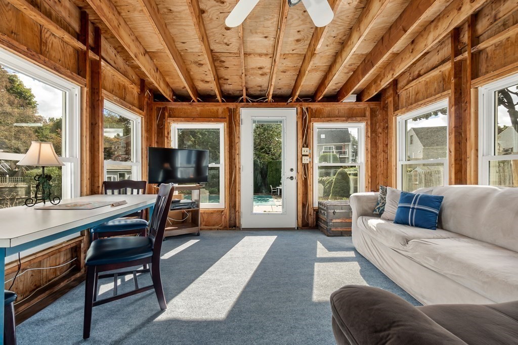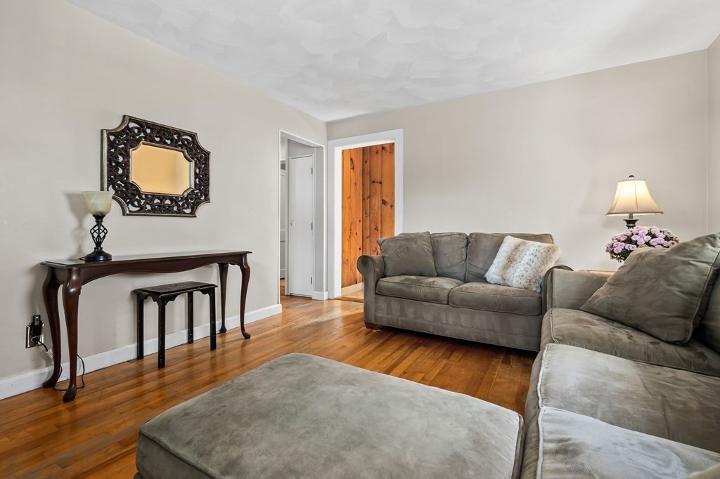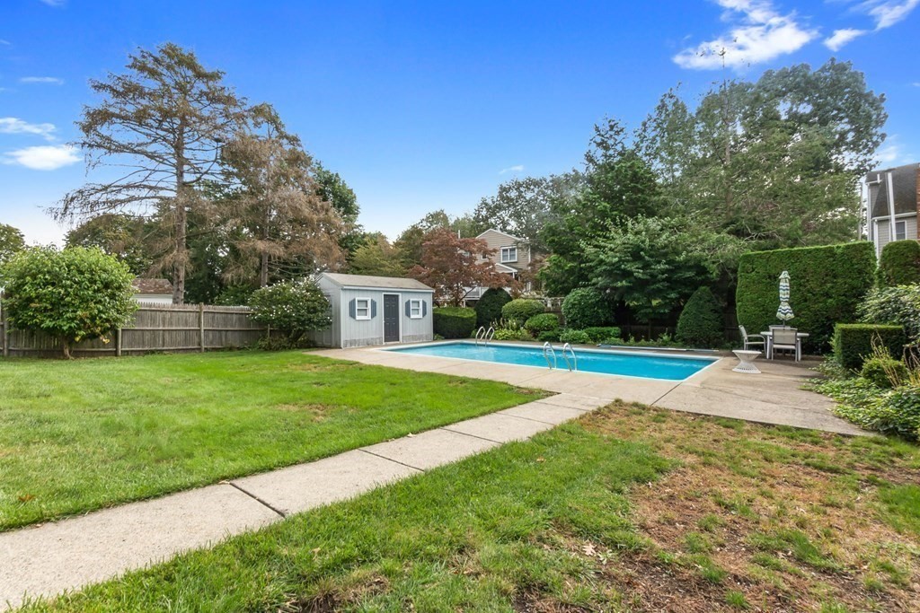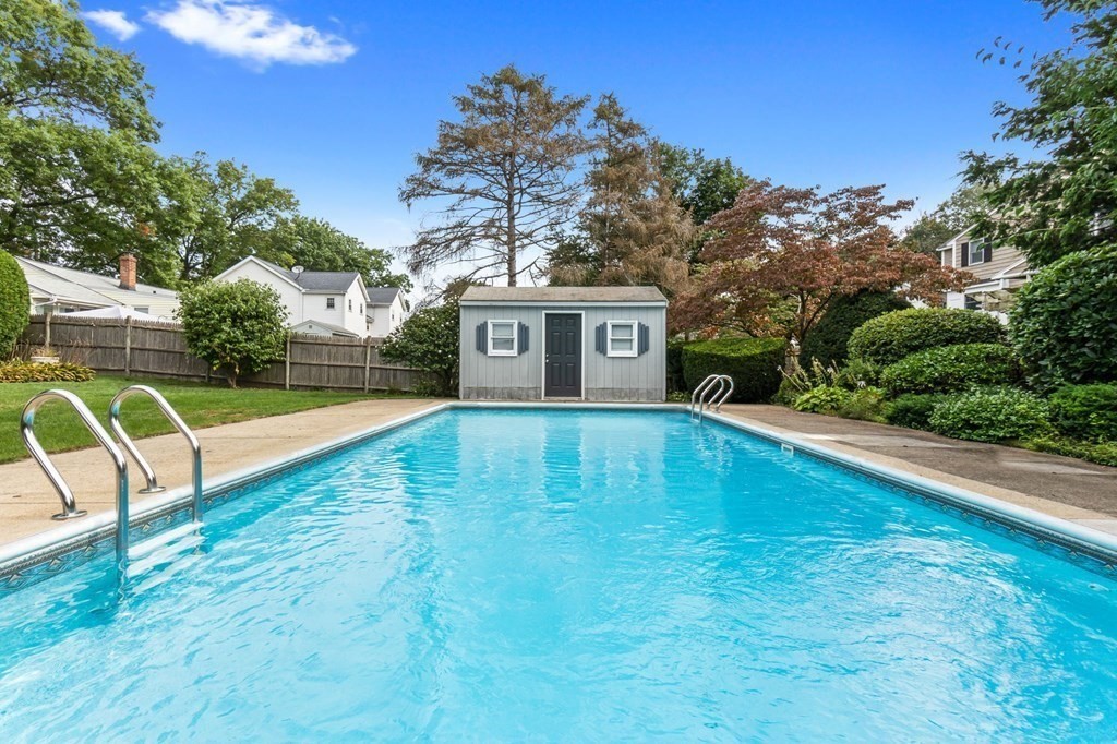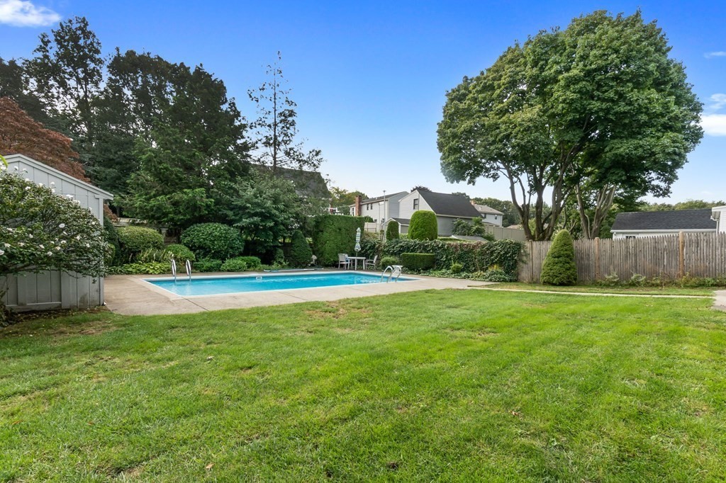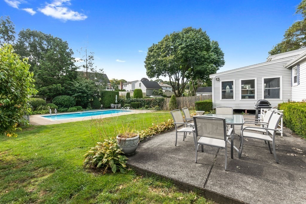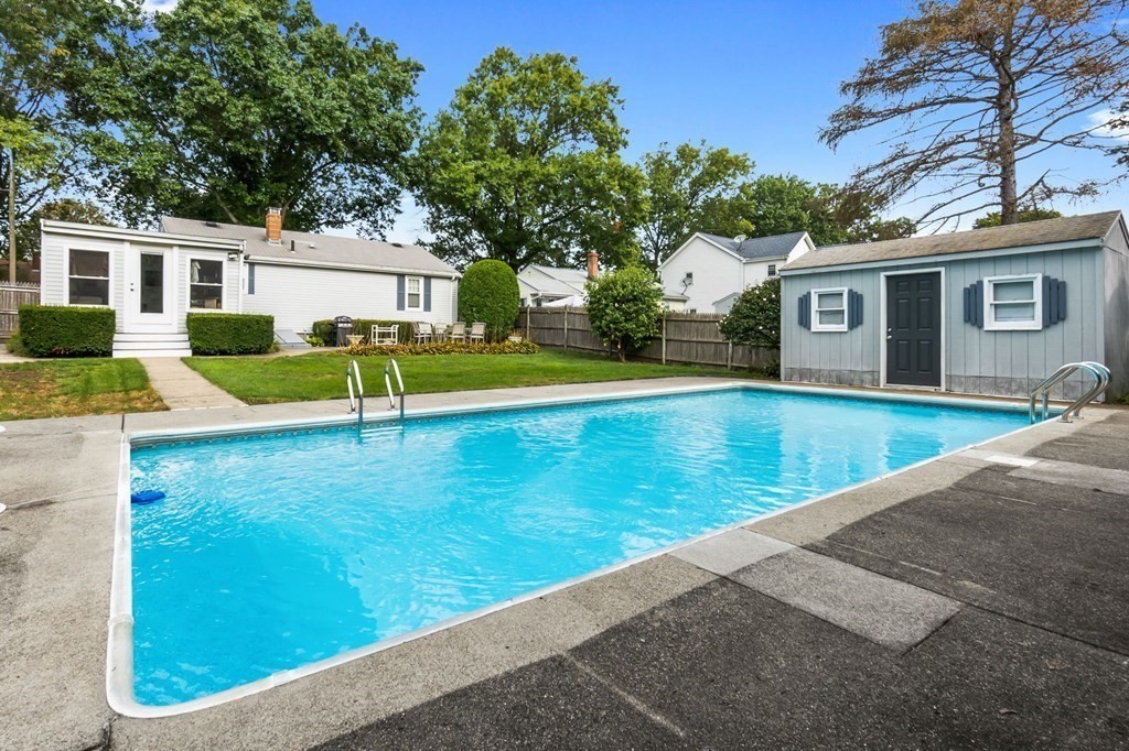 This Ranch-style home is a perfect choice for those just starting out on their homeownership journey or those looking to downsize. Nestled on a tree-lined side street, this home offers a beautifully landscaped yard, fully fenced, with mature trees & shrubs that surround the property offering privacy to enjoy the in-ground pool & spacious patio. Inside there is a welcoming Living room and 3 bedrooms all with hardwood flooring & an eat-in kitchen. One of the standout features is the screened-in porch with new Pella windows & vaulted ceiling that overlooks the yard and pool. This tranquil space is perfect for enjoying your morning coffee or relaxing with a good book. Low maintenance vinyl siding, partly finished basement with family room & home office, new water heater. Easy commuter location, close to Rts 128, 95 & Rt One. DON'T MISS IT!