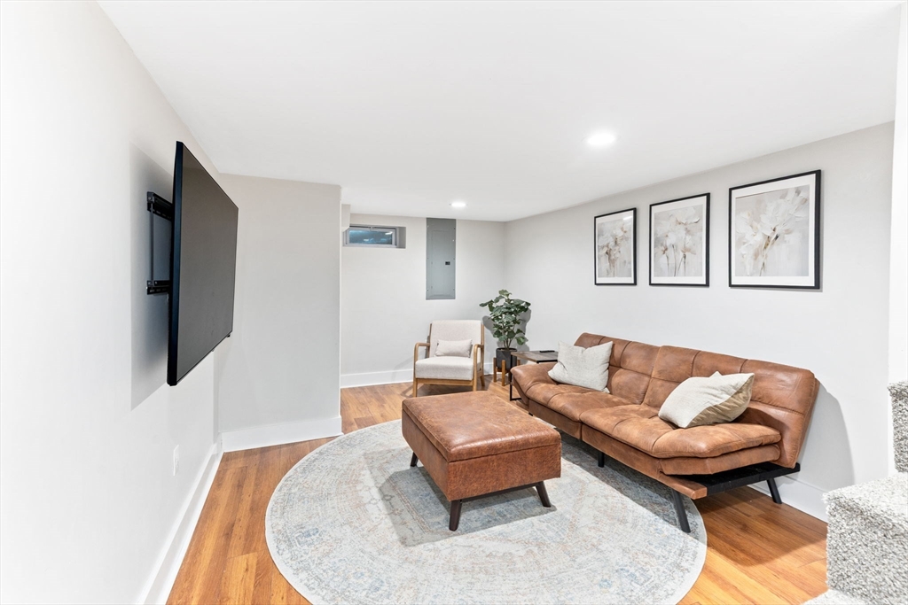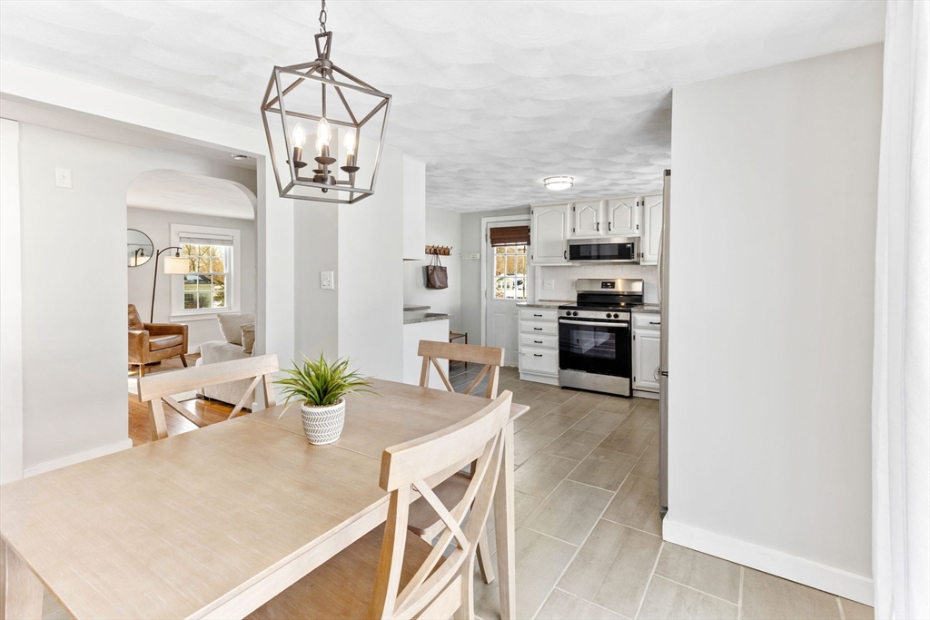 Location, Location, Location! Welcome to 122 Samoset Ave a move-in ready 3-bedroom home perfectly positioned on a quiet dead-end street. Less than 1 mile to downtown, the commuter rail, and the school complex. This turnkey home features an updated kitchen with newer appliances, hardwood floors throughout most of the first floor, a first-floor bedroom, and a convenient first-floor laundry room. Upstairs offers two generously sized bedrooms filled with natural light. The finished basement provides valuable additional living space ideal for a home office, playroom, or gym. New windows and siding (2019). Enjoy the convenience of downtown living while coming home to spacious backyard in a peaceful neighborhood.